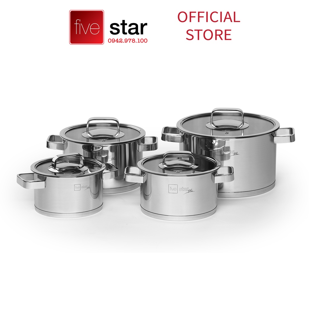 Nhà cửa & Đời sống > Dụng cụ nhà bếp > Nồi || Bộ 4 nồi 3 đáy inox 304 FiveStar Plus quai vuông nắp kính-sử dụng bếp từ ( tặng 1 vá canh )Còn hàng