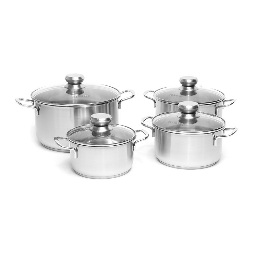 Bộ 4 nồi inox nắp kính Fivestar FS08CG thương hiệu Fivestar – Việt Nam, sản xuất tại Việt Nam. Thiết kế tiện dụng và đẹp mắt