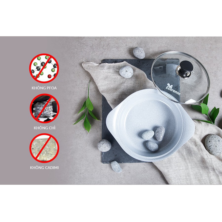 Bộ 4 nồi gốm sứ cao cấp ECORAMIC phủ đá chống dính siêu bền cao cấp 4 món ( Tặng 1 cặp nhấc nồi silicon )