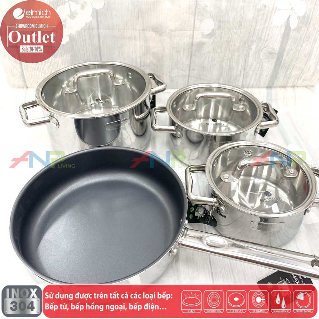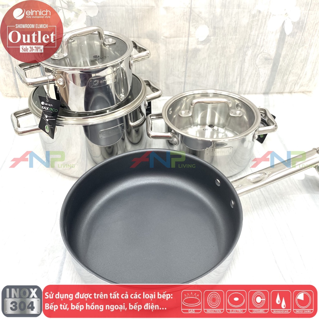 Nhà cửa & Đời sống > Dụng cụ nhà bếp > Nồi || Bộ 4 Nồi Inox Liền Đáy Elmich Trimax ECO EL-8003 size 16, 18, 22 Chảo 26cmCòn hàng