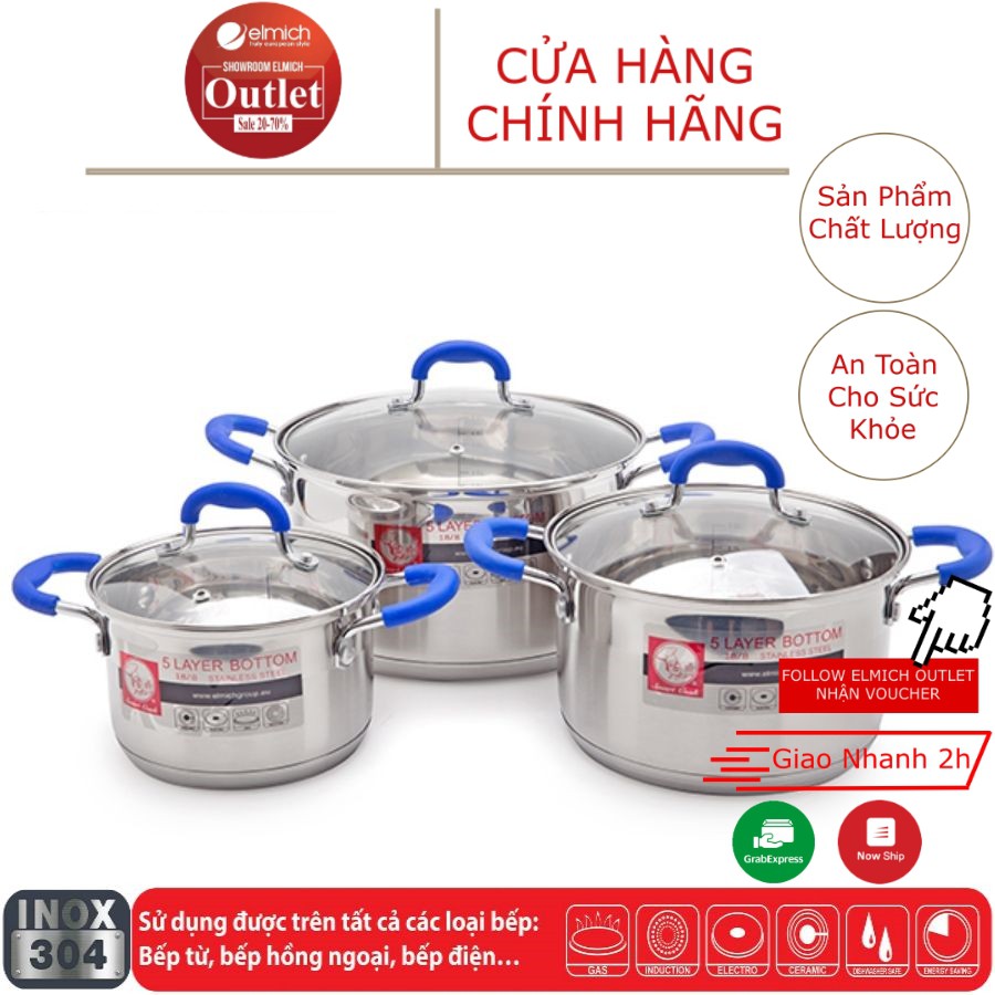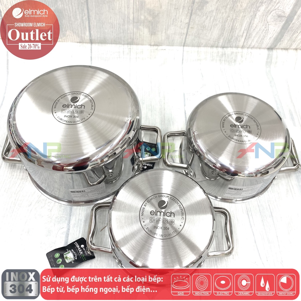 Giới thiệu Bộ 4 Nồi Inox Liền Đáy Elmich Trimax ECO EL-8005 size 18, 20, 26 Quánh 16cm