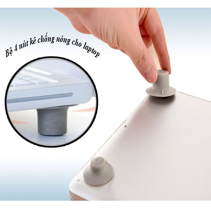 - Bộ 4 Nút Kê Chống Nóng – Tản Nhiệt Cho Laptop là giải pháp thay thế, vừa giúp tản nhiệt cho laptop, kéo dài tuổi thọ của laptop.- Bộ 4 Nút Kê Chống Nóng – Tản Nhiệt Cho Laptop có thể di chuyển và mang theo một cách dễ dàng. Bạn chỉ cần tháo rời và xếp gọn là có thể mang đi bất kỳ nơi đâu.