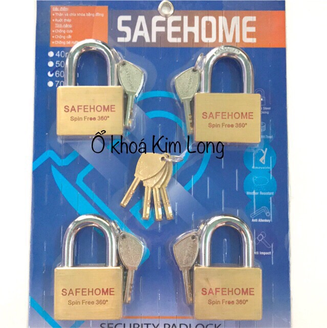 Bộ 4 Ổ khoá SAFE HOME 6 phân an toàn ,ruột thép ,chống cắt ,thách thức mọi loại trộm bẻ đoản,cắt ,cưa càng khoá👍👍Bộ khoá cửa gồm 4 ổ khoá mỗi ổ khoá có 4 chìa khoá riêng của mỗi ổ trong đó có 1 bộ chìa mở được hết 4 ổ