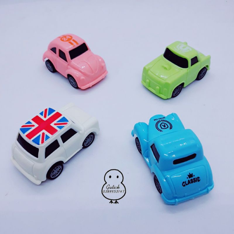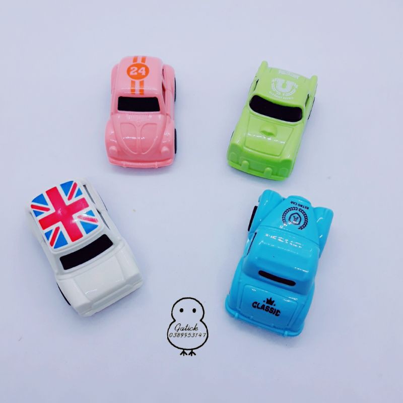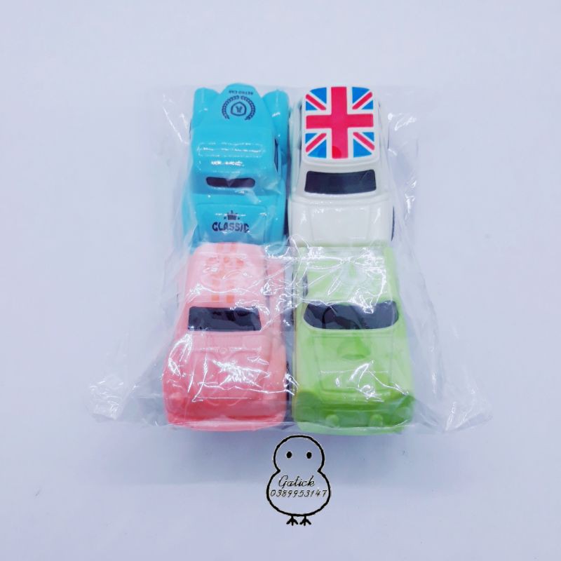 Các mẫu xe trang trí về hàng nhiều! Set 4 oto dùng trang trí sinh nhật, đồ chơi cho bé-Gồm: 4xe/set có 4 màu như hình