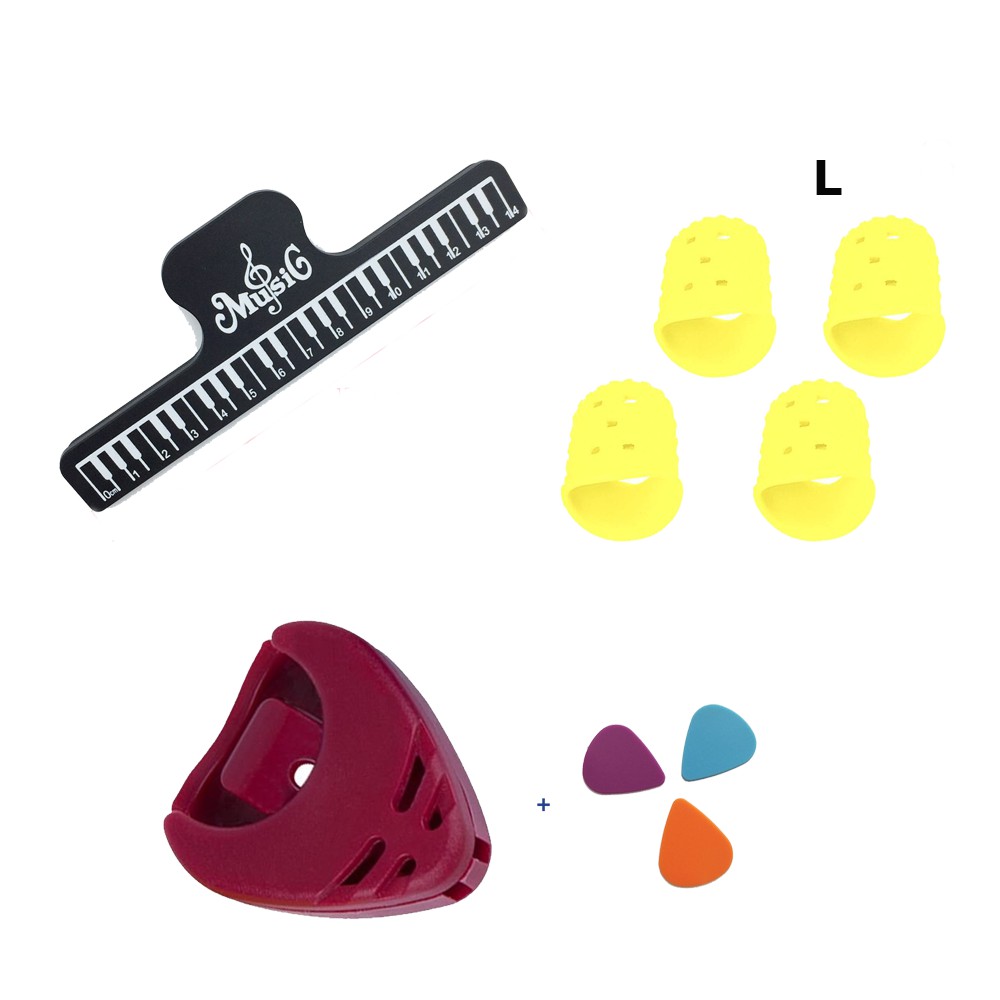 Bộ phụ kiện gồm 4 món là dụng cụ hỗ trợ đắc lực cho người tập chơi guitar:1. Kẹp bản nhạc: Giúp giữ cố định các bản nhạc vào giá nhạc chì đơn giản bằng cách kẹp nó vào. Kẹp bản nhạc phù hợp với tất cả người chơi bất kỳ nhạc cụ nào. Đây là một dụng cụ cần thiết cho việc tập luyện chơi nhạc cụ.