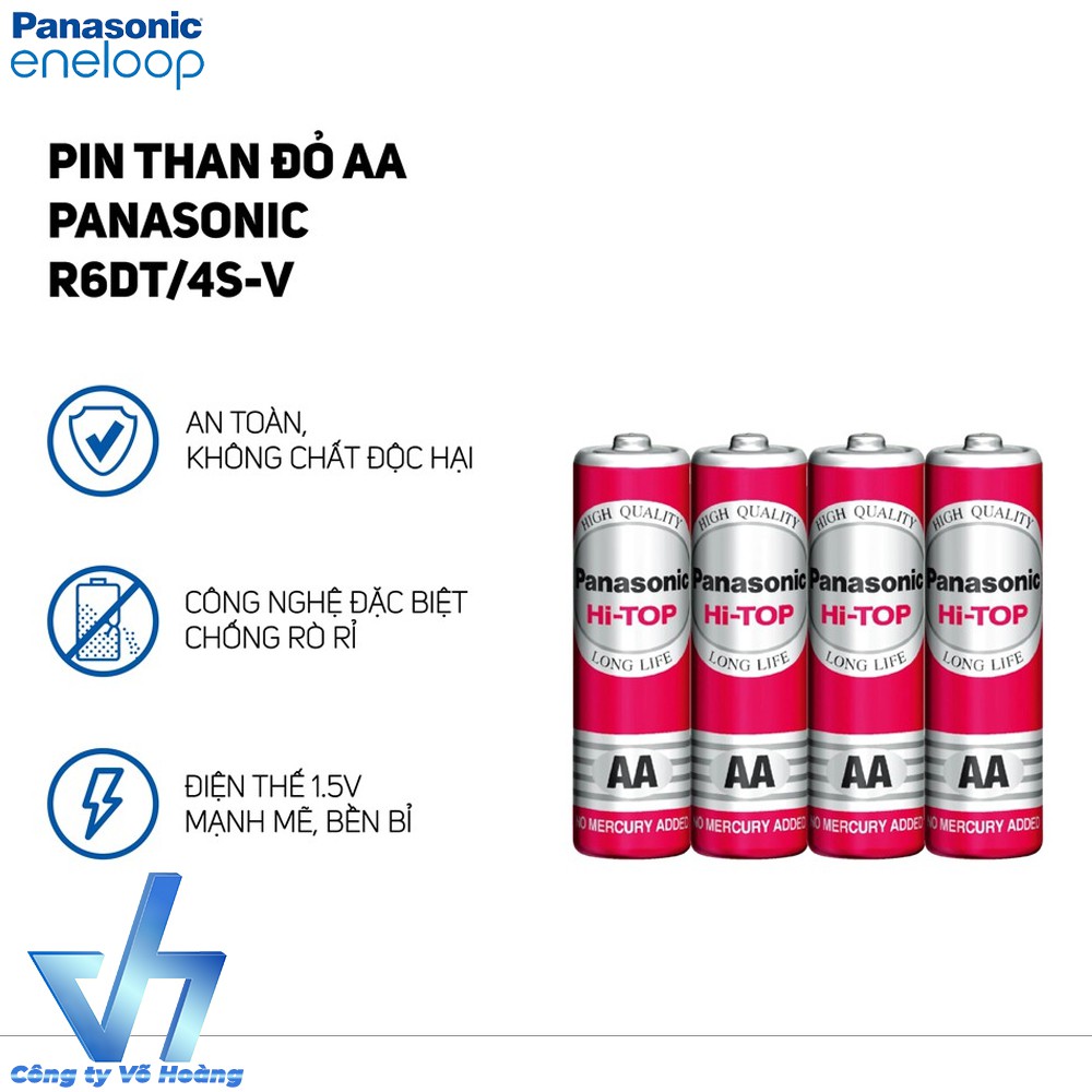 Bộ 4 pin AA chính hãng Panasonic R6DT High Quality (Đỏ)