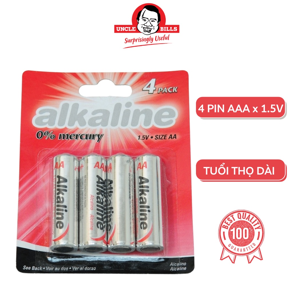 Bộ 4 Pin Alkaline AA điện thế 1.5V Uncle Bills IB0031 hàng nhập khẩu chính hãng siêu bền pin loa kẹo kéo mic không dây