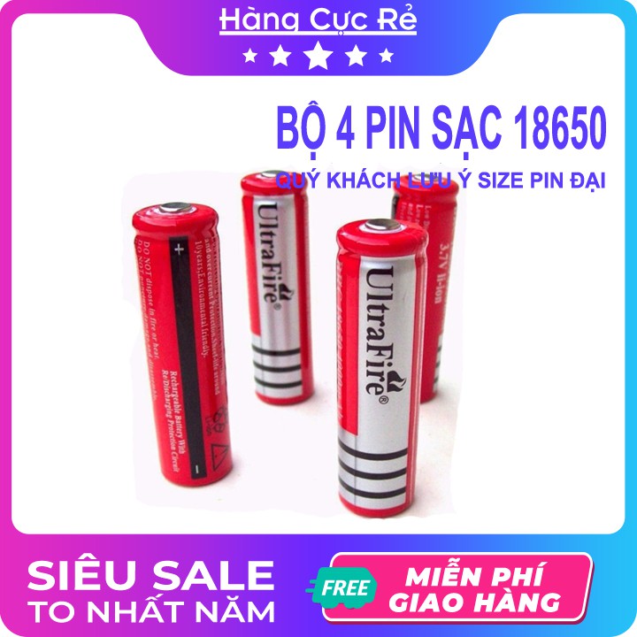 Bộ 4 Pin sạc 18650 loại TỐT Ultra Fire FREESHIP Pin phù hợp cho đèn pin, quạt mini, quạt sạc - Shop Hàng Cực Rẻ