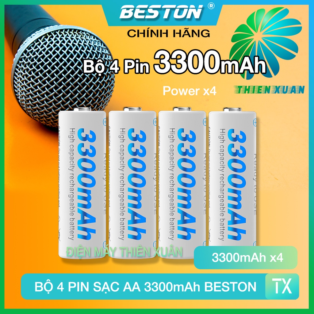 Bộ 4 Pin Sạc AA Beston 3300mAh Cho Micro Karaoke loa, đồ chơi trẻ em, đồng hồ, thiết bị điện tử, đèn flash, pin máy ảnh