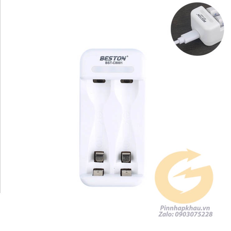 C8001: Bộ sạc 2 pin AA/AAA - Đèn đỏ khi sạc - Không chuyển màu khi đầy pin