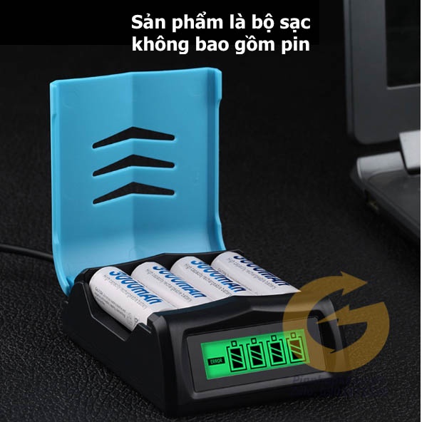 DC401L: Bộ sạc 4 pin AA/AAA - Đèn đỏ khi sạc - Tự ngắt khi đầy an toàn thông mình - Đèn xanh khi đầy