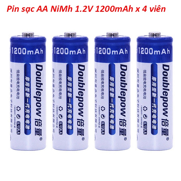 Bộ 4 pin sạc AA Doublepow 1200mAh Cam Kết Dung Lượng Thật