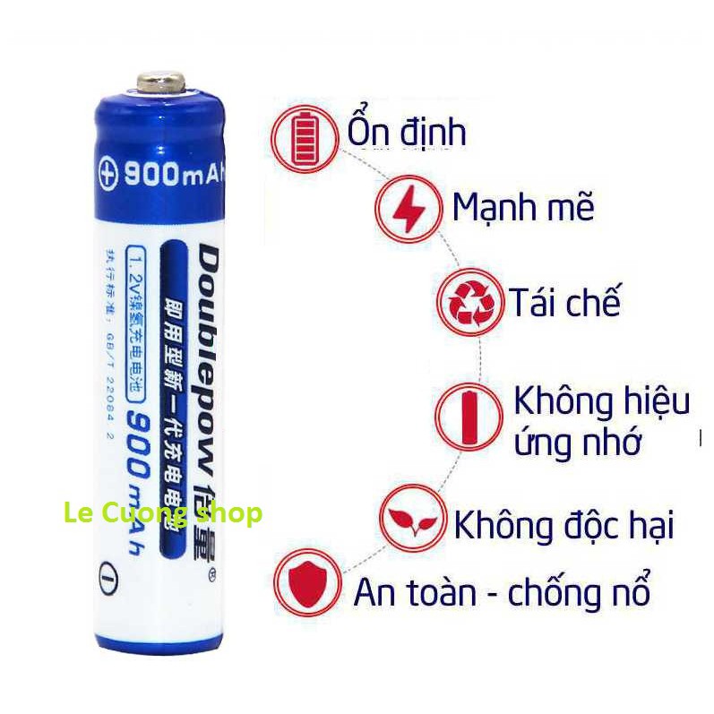 bộ 4 pin tiểu (pin đũa )sạc AAA Doublepow 900 mAh lắp điều khiển tivi ,điều hòa...