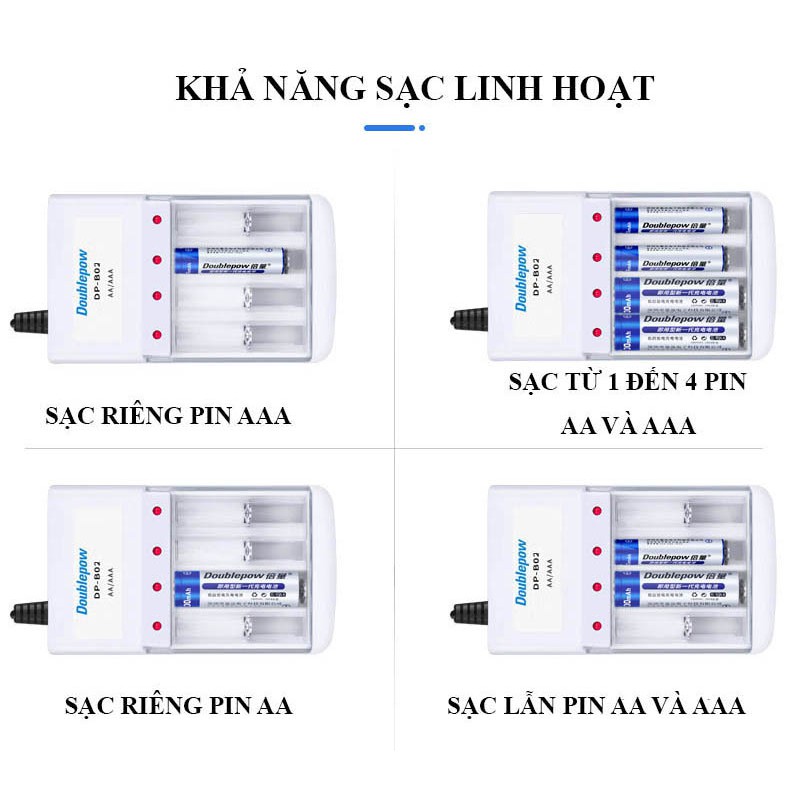 ☑️ 4 Pin: gồm 04 Pin sạc AA 1200mAh Doublepow