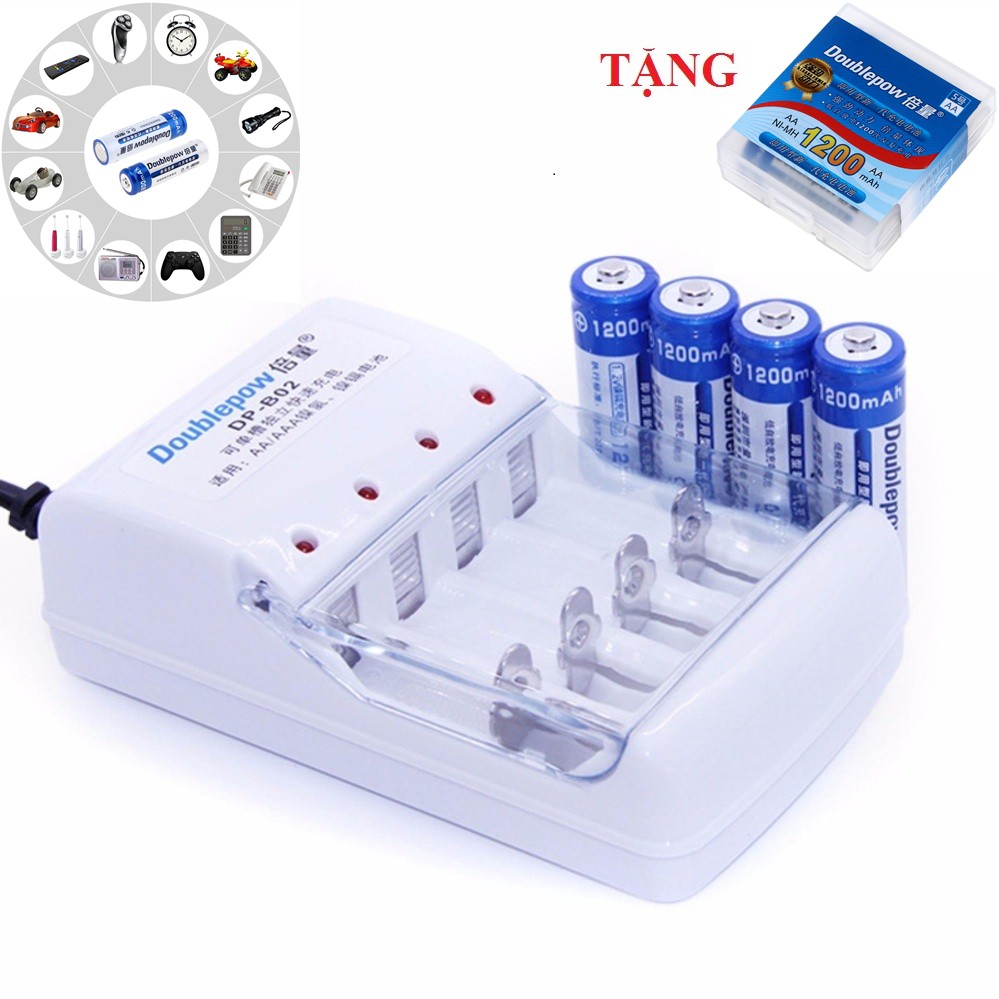 + 04 Pin sạc AA 1200mAh Doublepow hoặc Beston.