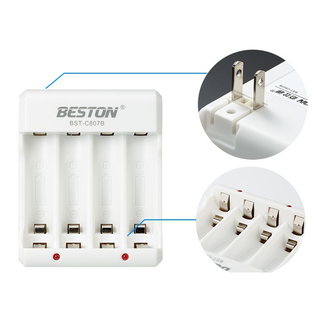+ Lưu ý bộ sạc chỉ dùng sạc cho pin có thể sạc được điện áp 1.2V (có chữ Rechargeable trên pin). Các loại pin "Kẽm-Cacbon" như pin con Thỏ, con Ó... hoặc pin "Alkaline" đều là pin dùng 1 lần, pin loại này không sạc được. Người dùng không nên cố tình sạc pin trên!