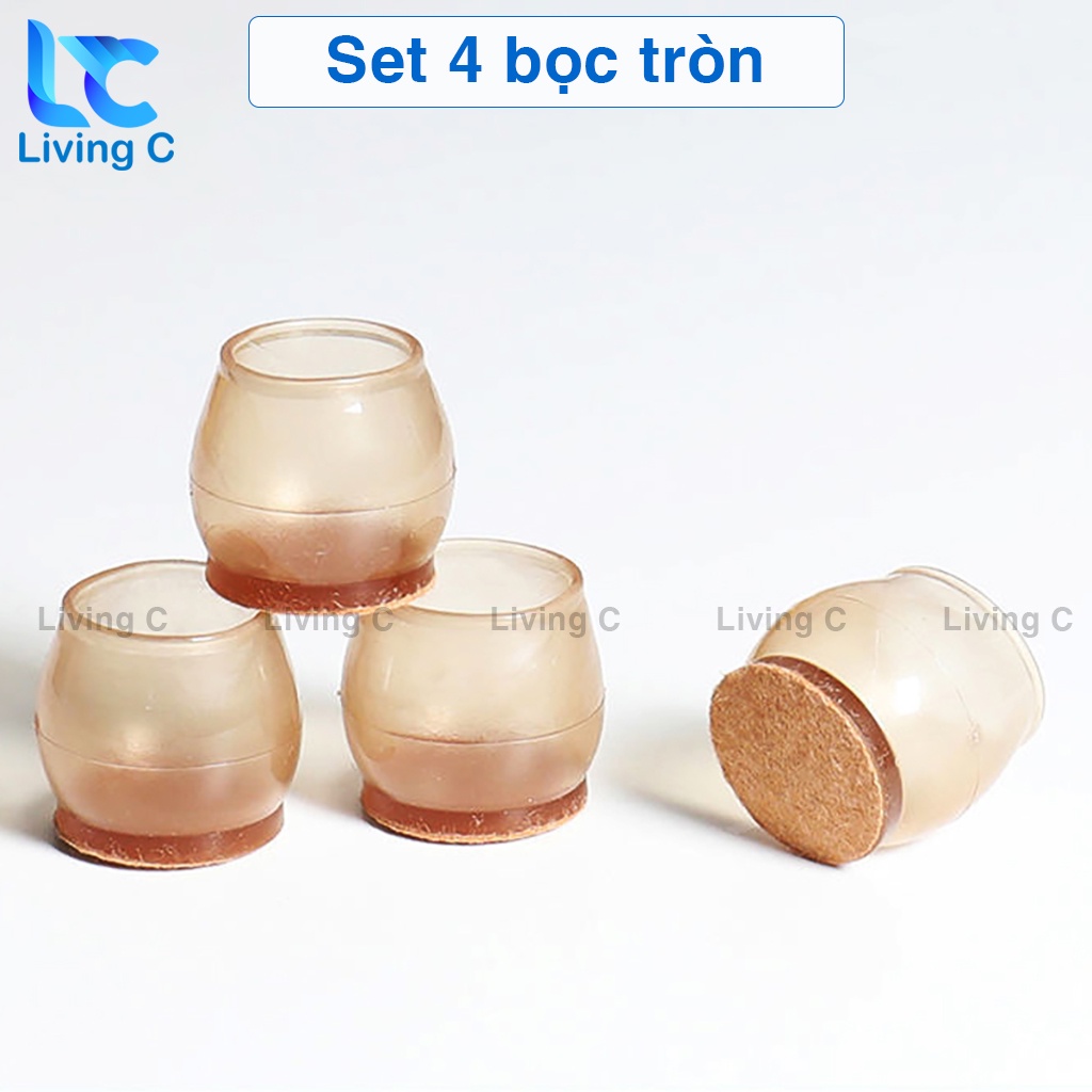Bộ 4 silicon bọc chân bàn ghế chống va đập trơn trượt Living C, bọc chân bàn ghế silicon loại dày cao cấp _BCB