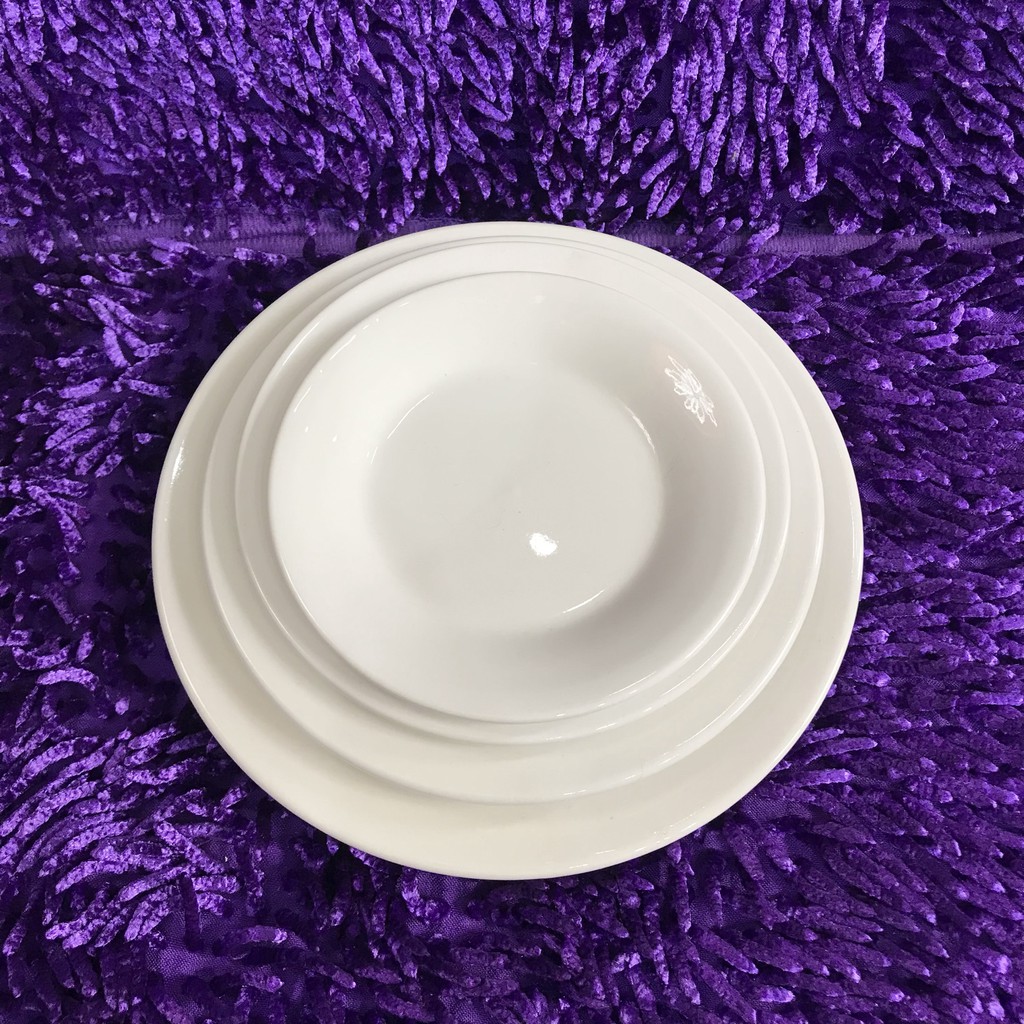 [4 Size]Đĩa Sứ Sâu Trắng Trơn, Đẹp Tuyệt Vời