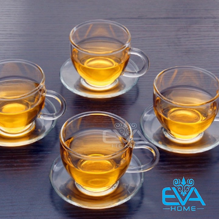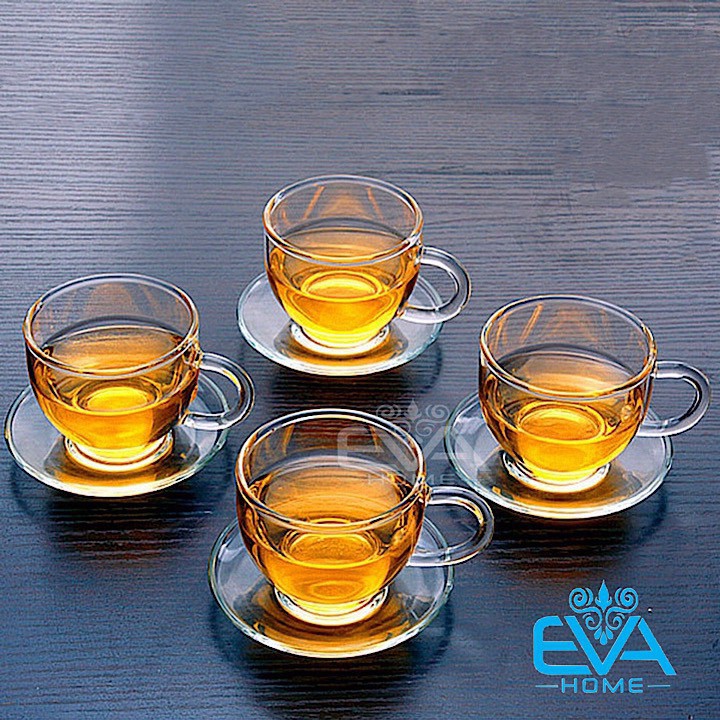 Bộ 4 Tách 4 Đĩa Thuỷ Tinh Chịu Nhiệt Cao Cấp