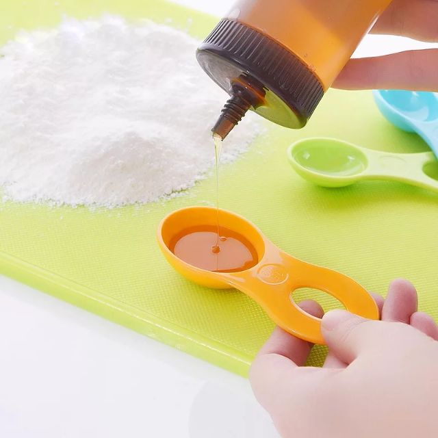 Gồm 4 thìa đong đong được các dung tích 2,5ml, 5ml, 7ml, 10ml, 15ml.