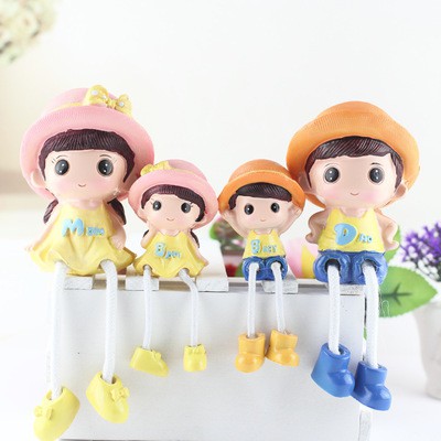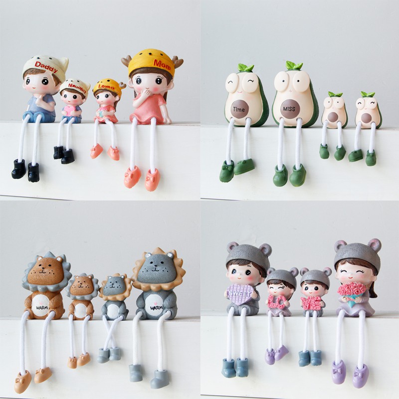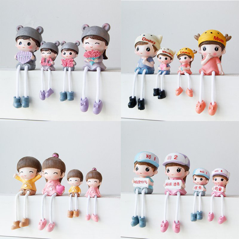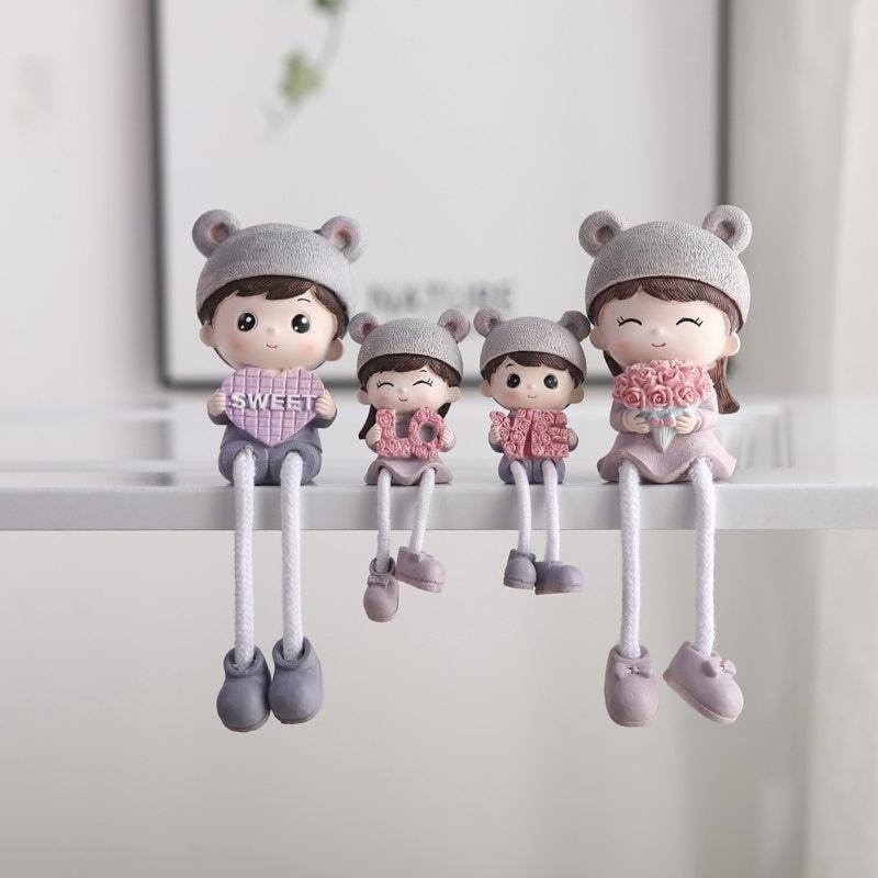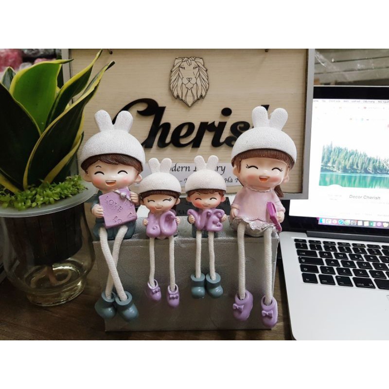 Giới thiệu Bộ 4 tượng gia đình đội mũ trang trí kệ tủ, giá sách, decor bàn làm việc GD-01