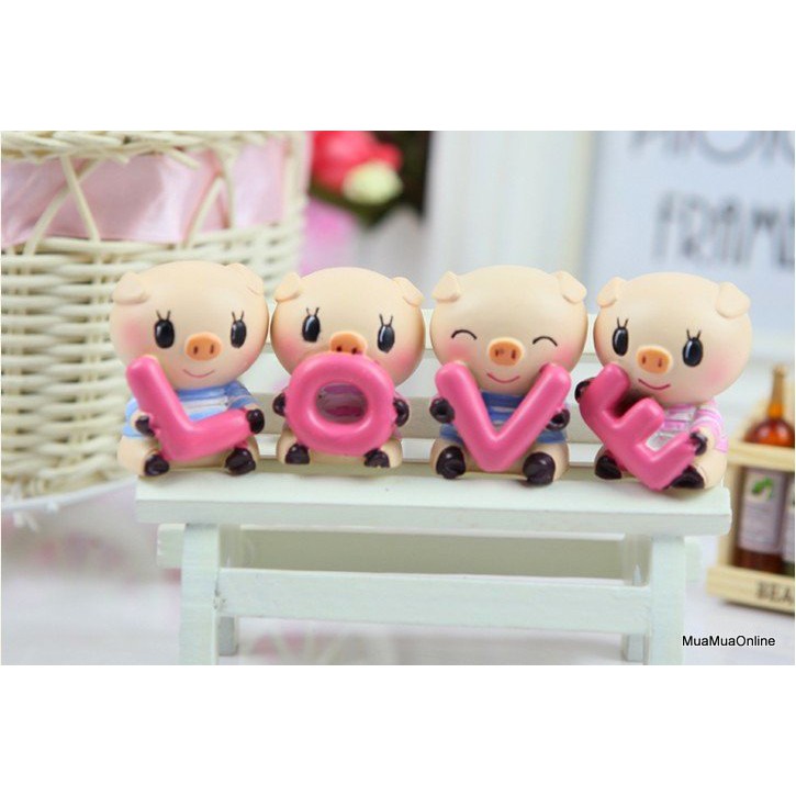 Bộ 4 Tượng Heo Ôm Chữ LOVE