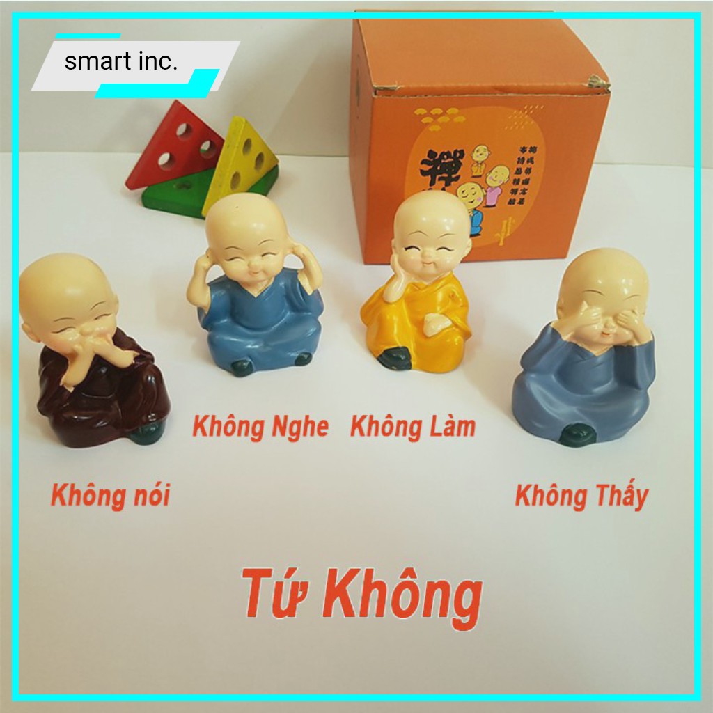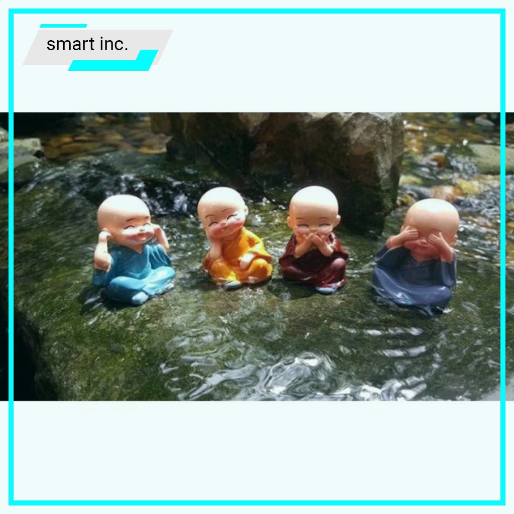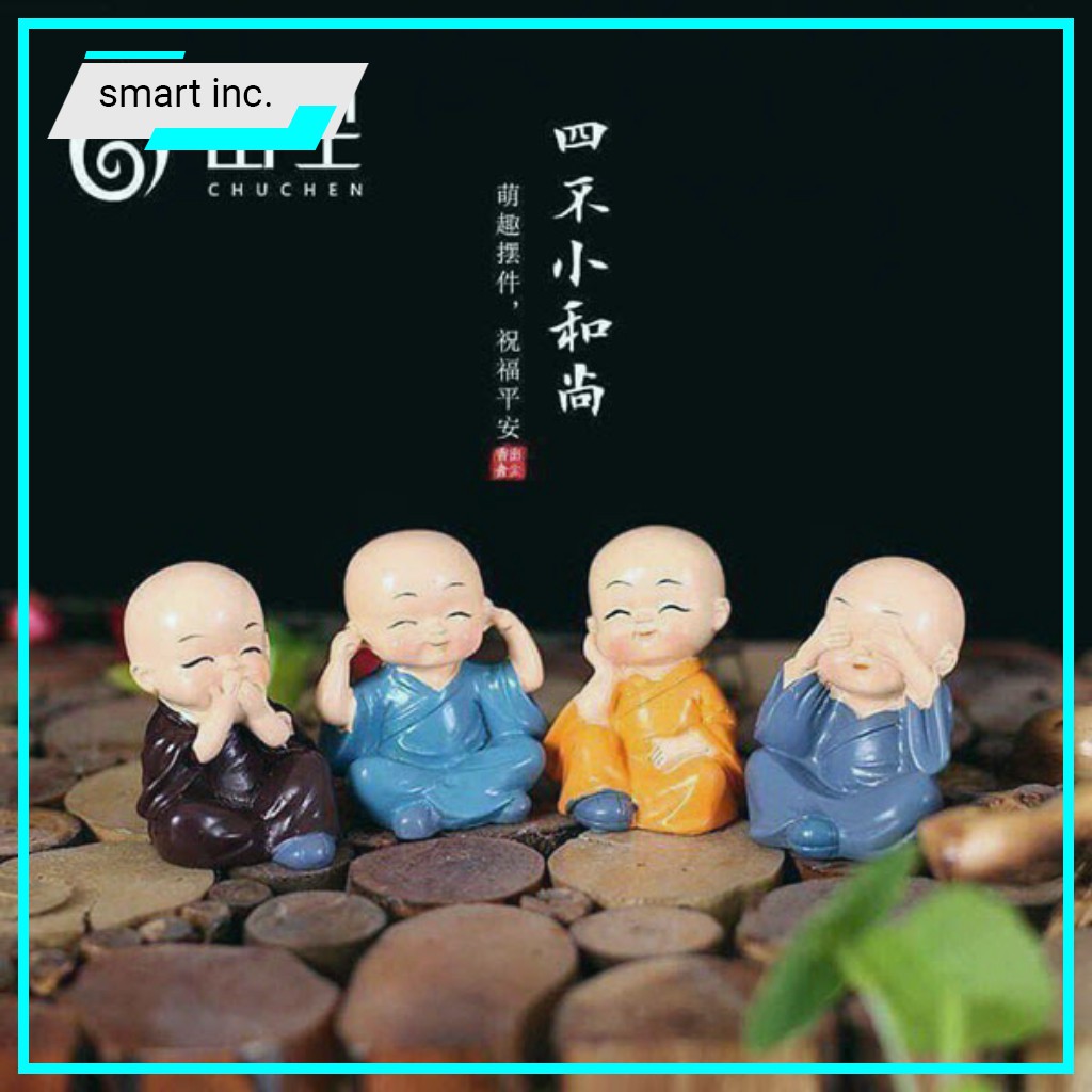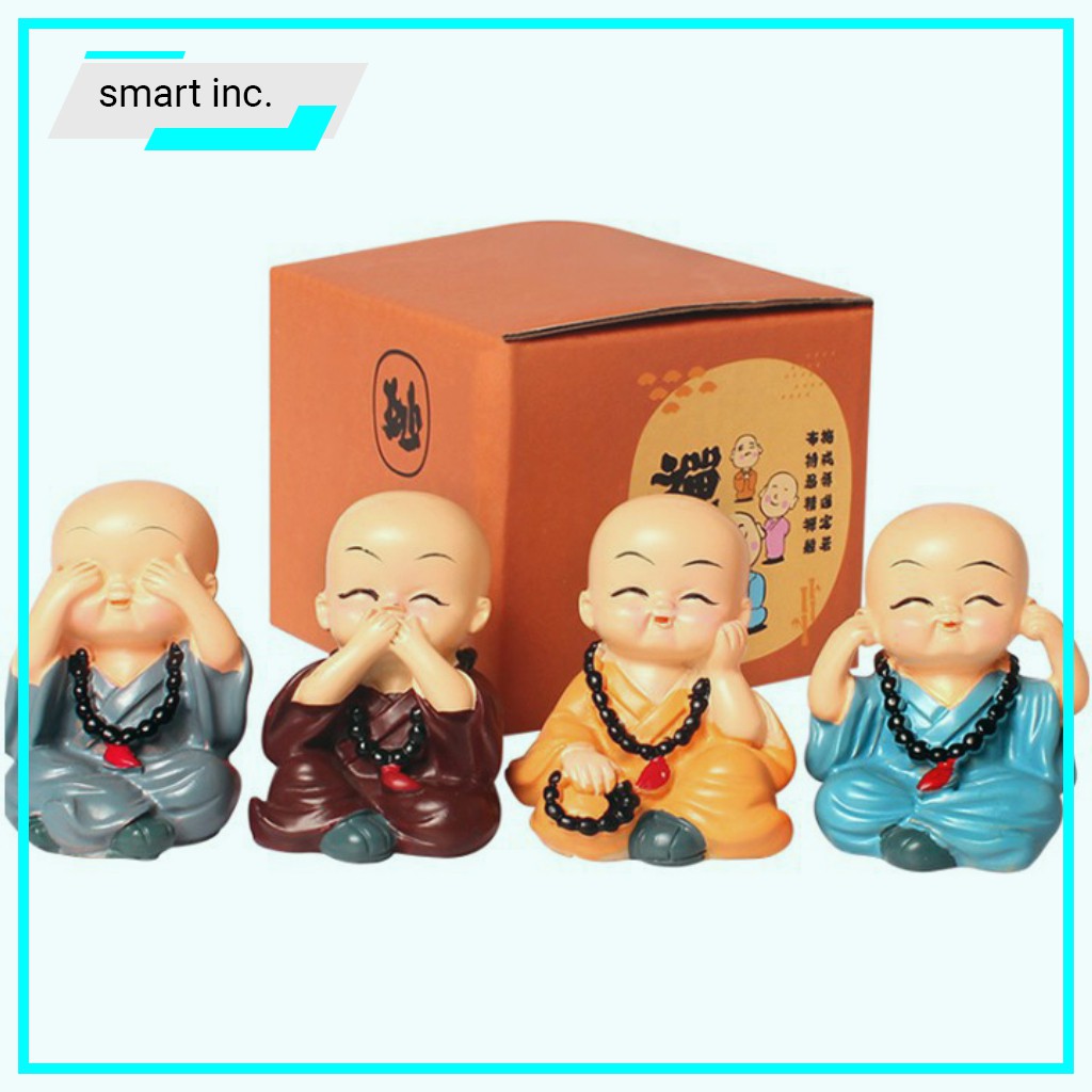 Thiết kế 4 chú tiểu với ngoại hình nhỏ nhắn xinh xắn và rất ý nghĩa để để bàn làm việc, để xe ô tô, trang trí phòng khách, làm quà tặng,...