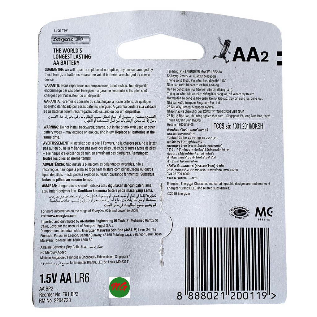 Công ty sản xuất: Energizer Singapore Pte., Ltd .