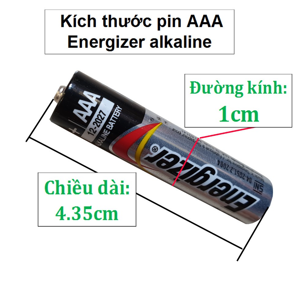 - Kích cỡ: pin AAA, hay 3A còn gọi là pin tiểu, dài 4.35cm, đường kính 1cm.