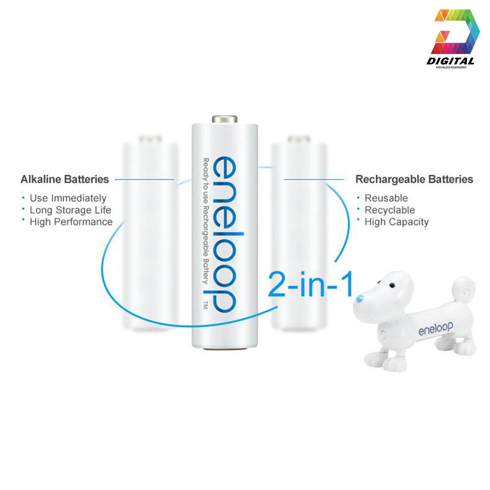 - Loại pin sạc Eneloop có thể sạc lại , tự xả pin, tái sạc 2100 lần.