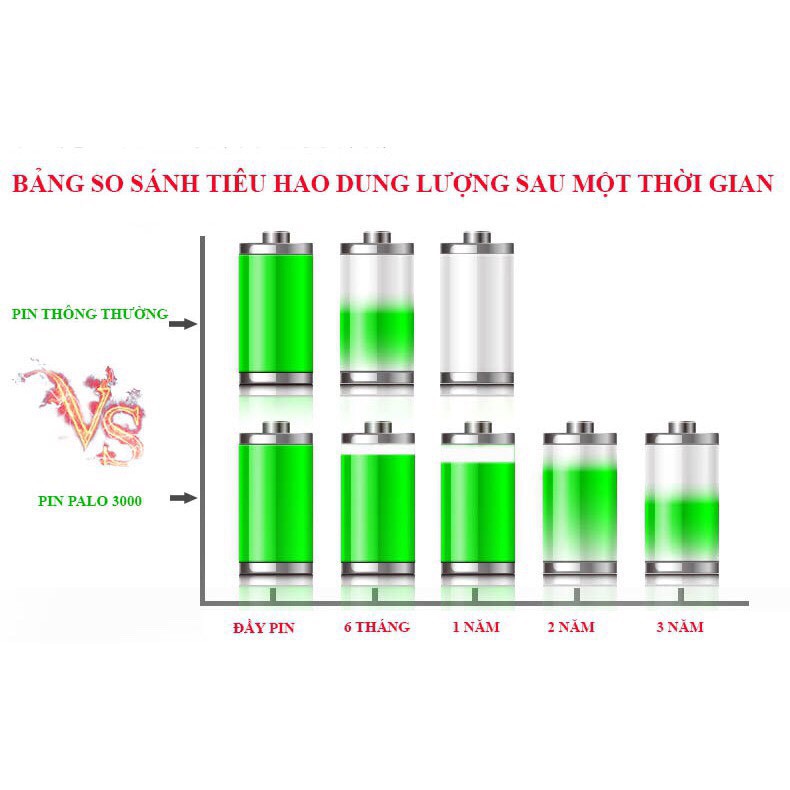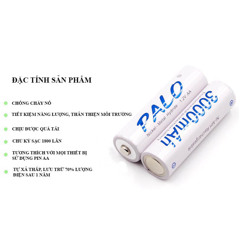 ☑ Pin tiểu sạc Palo AA NiMH 3000mAh có chất lượng và dung lượng tuyệt vời với dung lượng thực tế 2500mAh (min) cho thời lượng sử dụng lâu.
