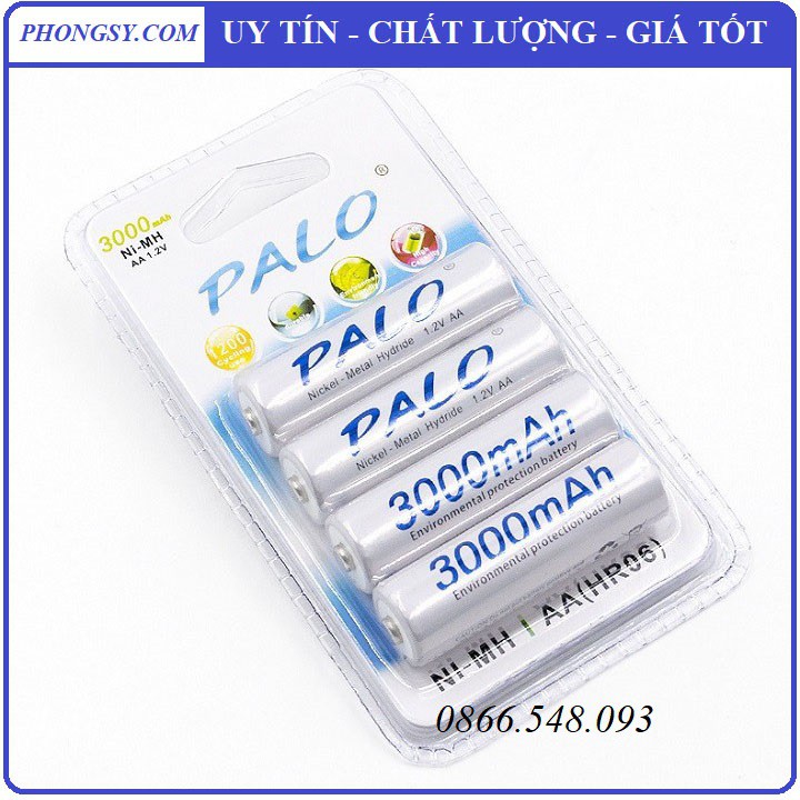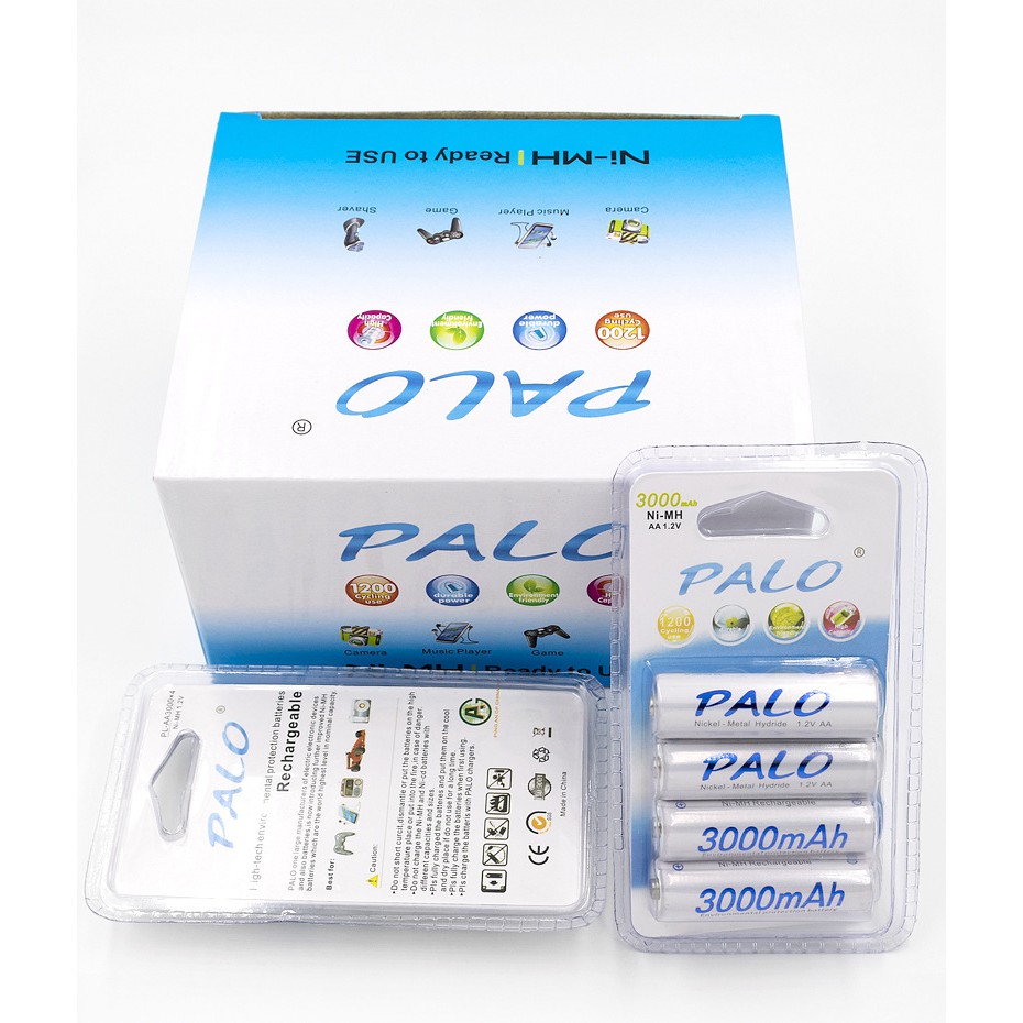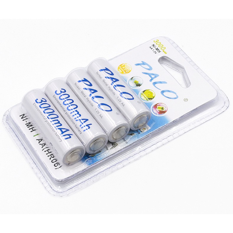 Bộ 4 Viên Pin Tiểu Sạc Palo AA Ni-MH 3000mAh Cho Máy Ảnh, Ô Tô Điều Khiển, Mic..