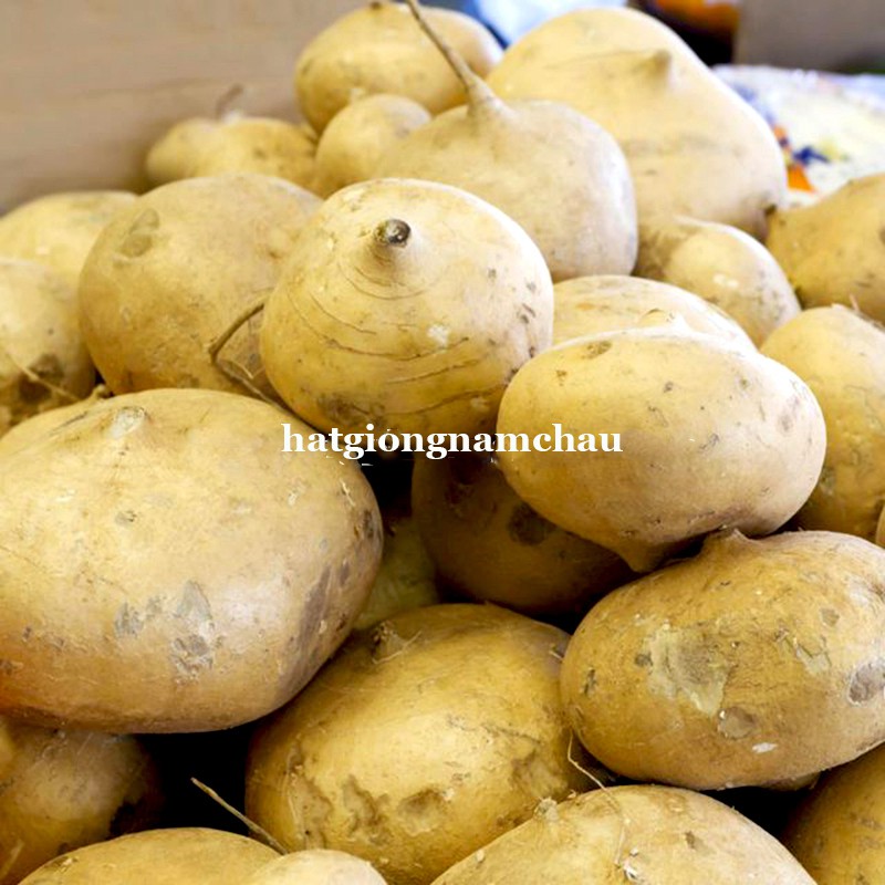 - Thời gian thu hoạch : 90-100 ngày sau khi gieo (tùy thời vụ ).Trọng lượng 300-400 gr/củ