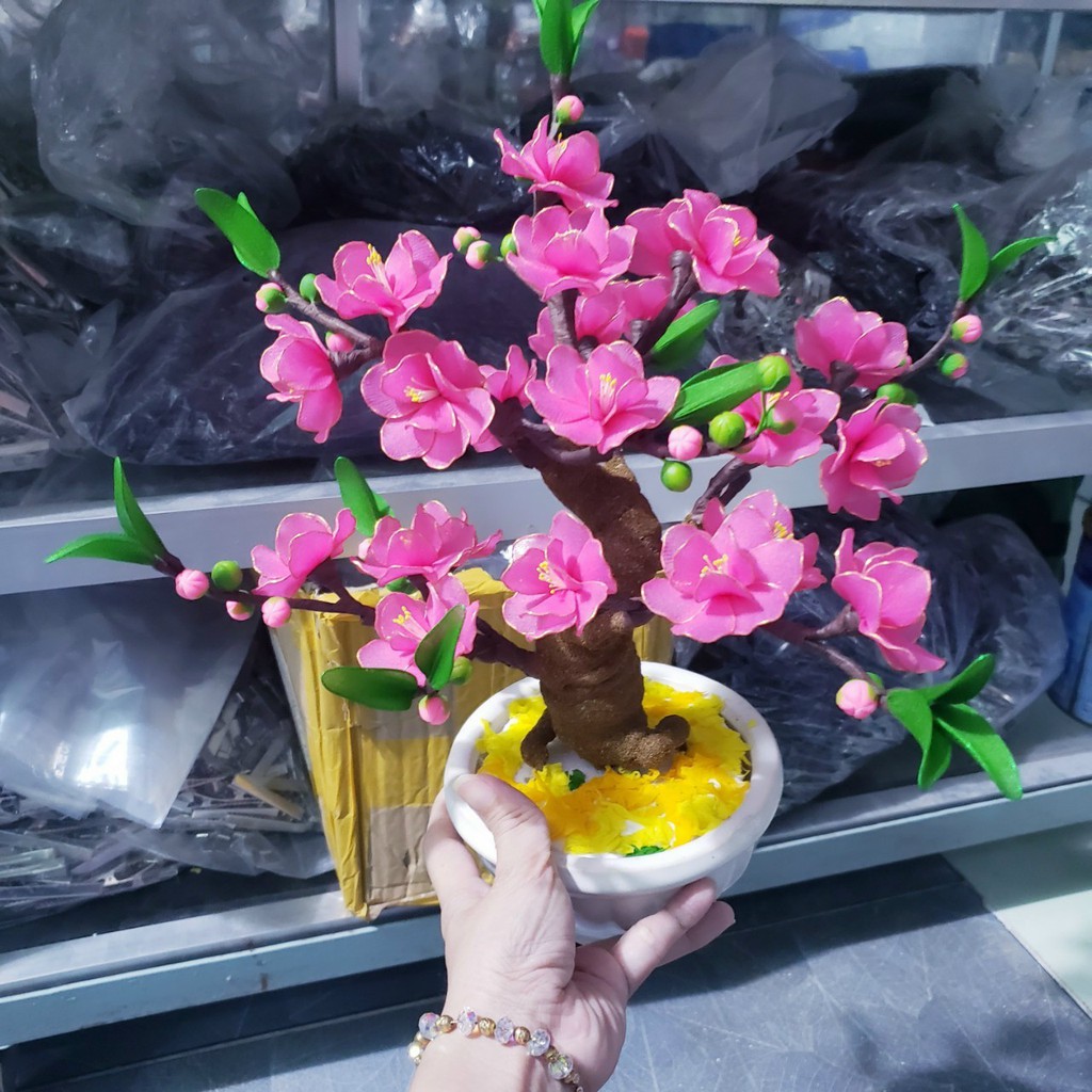 Đóng gói: Bộ 45 cánh làm được 5 hoa đào 9 cánh như hình, các bạn mua thêm nhị hoặc các nguyên liệu cần thiết nếu chưa có nha. 1 bộ đầy đủ gồm ( 45 cánh hoa, 3 bó nhị, 1 cuộn keo sáp, 1 cuộn chỉ quấn)
