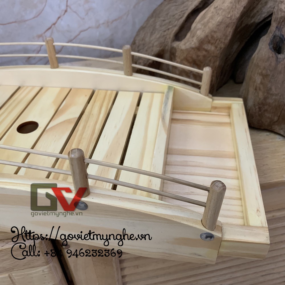 [Dài 45cm - Hàng chuẩn Nhật] Khay cầu gỗ trang trí sushi sashimi - Khay gỗ trang trí Sushi hình cây cầu - Dài 45cm - Gỗ