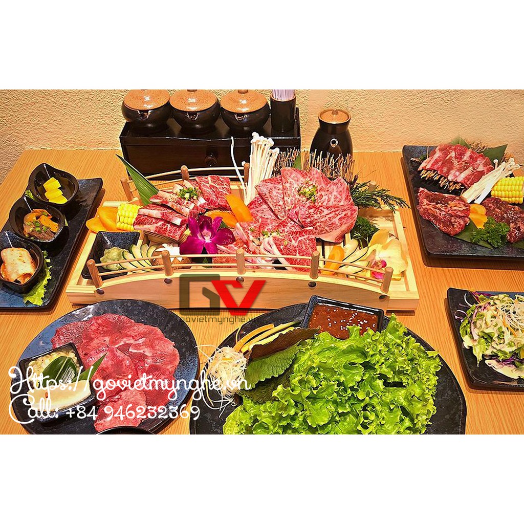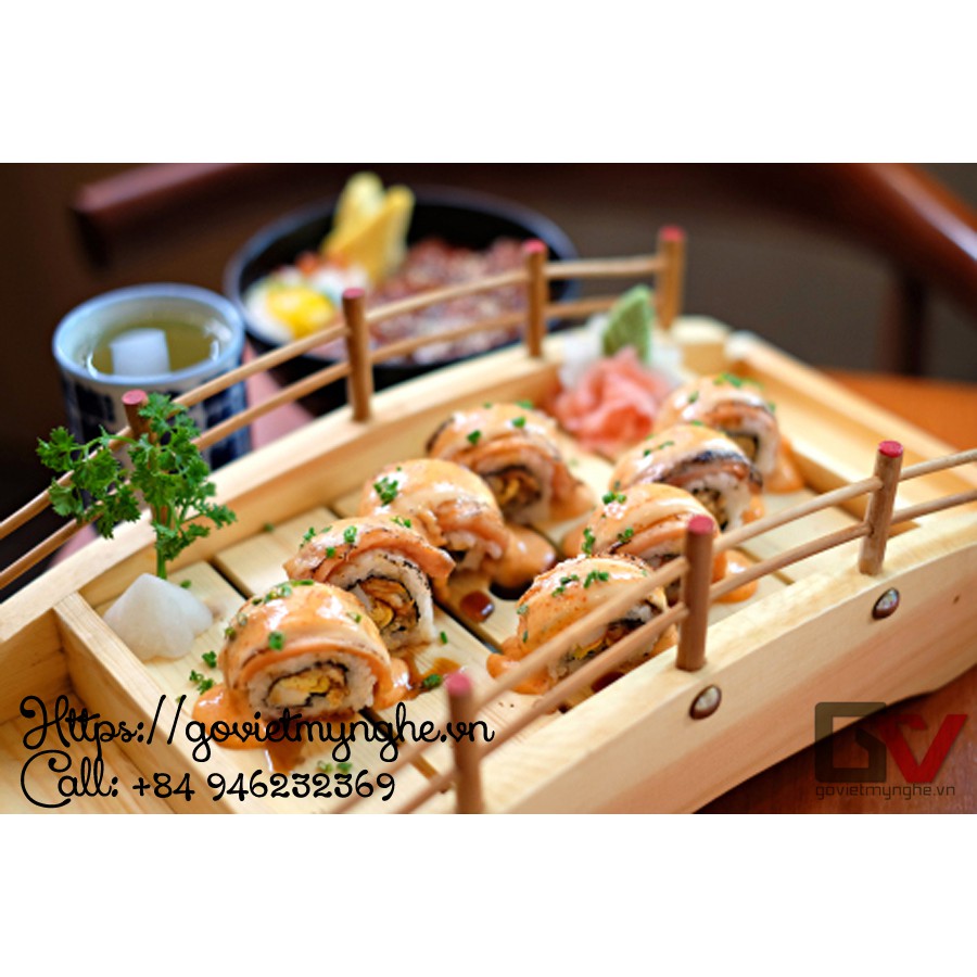 + 1 cầu gỗ trang trí sushi - sashimi dài 45cm.