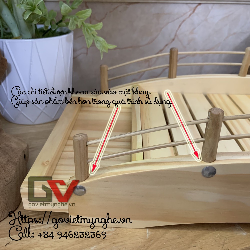 Giới thiệu [Dài 45cm - Hàng chuẩn Nhật] Khay cầu gỗ trang trí sushi sashimi - Khay gỗ trang trí Sushi hình cây cầu - Dài 45cm - Gỗ