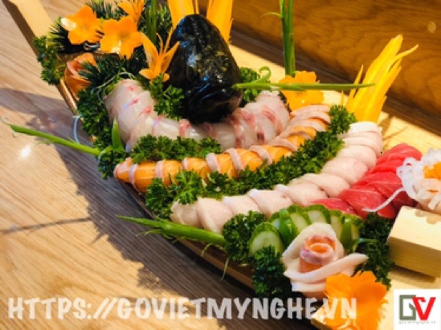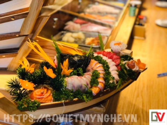 + Khay thuyền gỗ được dùng để trang trí Sushi - Sashimi trong phong cách trang trí ẩm thực Nhật Bản.