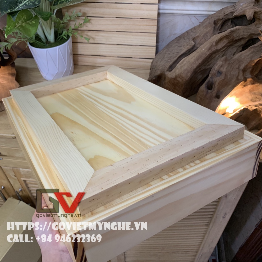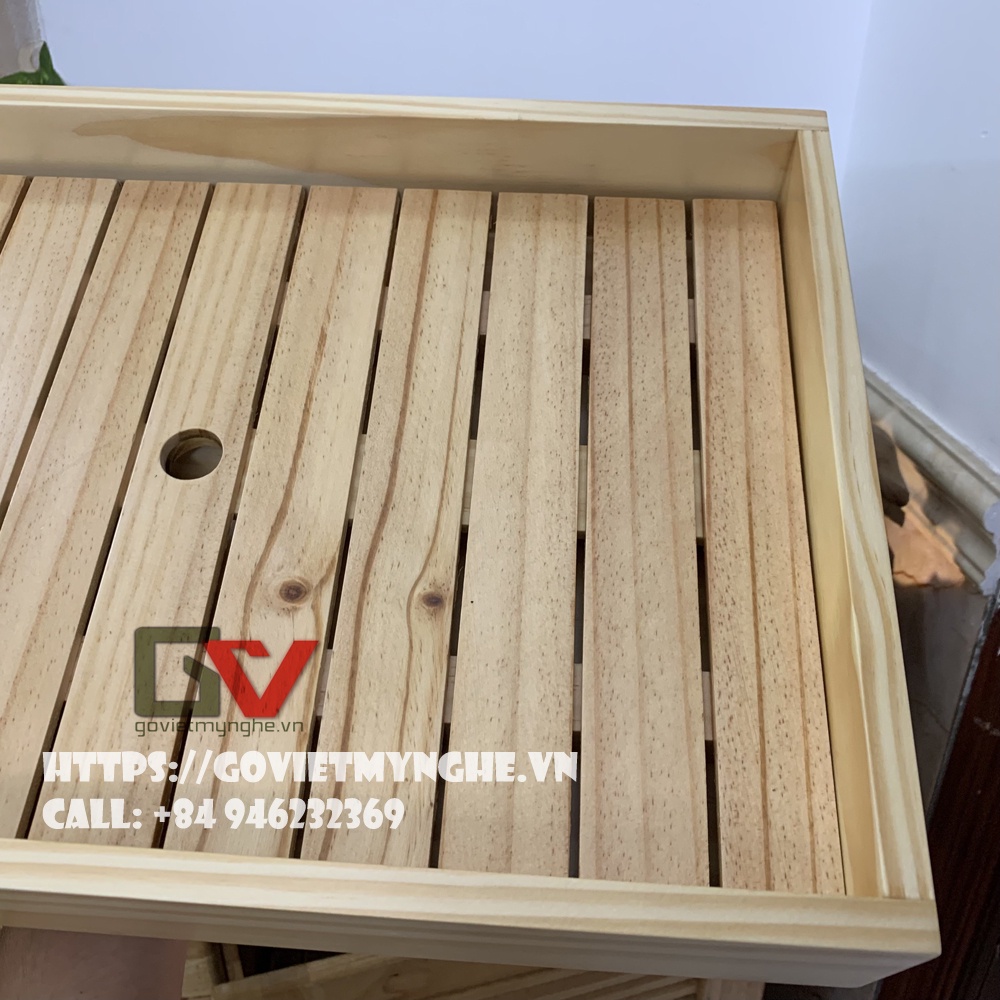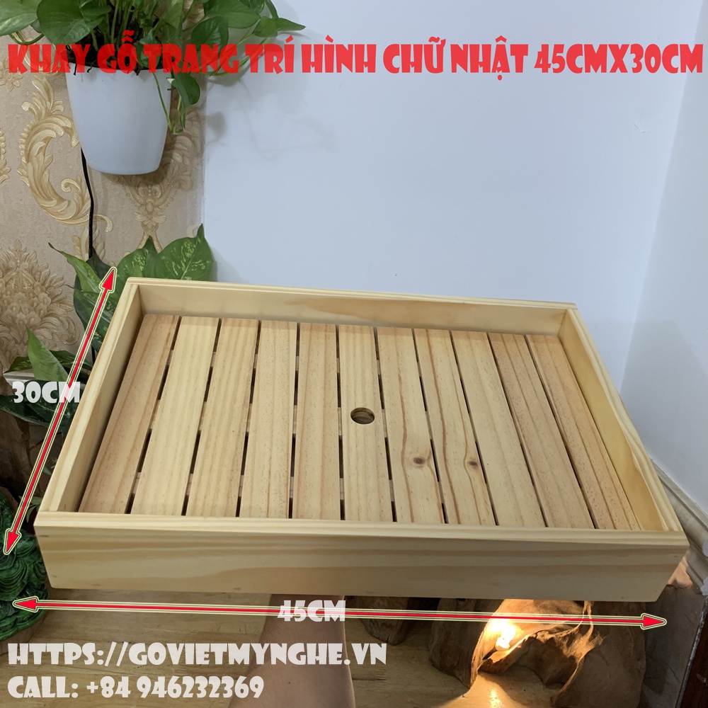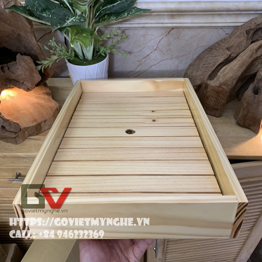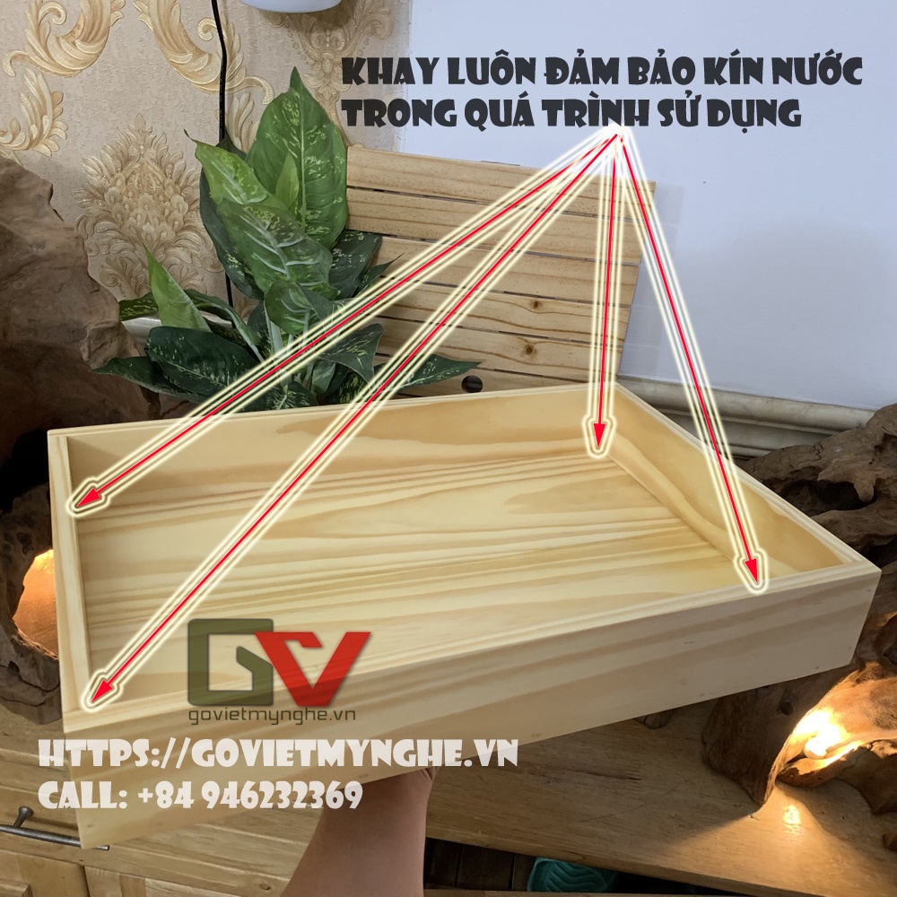 + Khay gỗ trang trí trưng bày món ăn với chất liệu gỗ Thông tự nhiên, chất lượng gỗ đạt tiêu chuẩn vệ sinh an toàn thực phẩm và xuất khẩu sang nhiều nước.