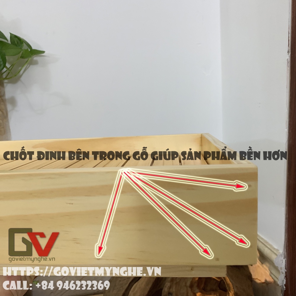 + Khay gỗ trang trí được chốt đinh sắt bên trong gỗ giúp cho sản phẩm bền hơn trong quá trình sử dụng.