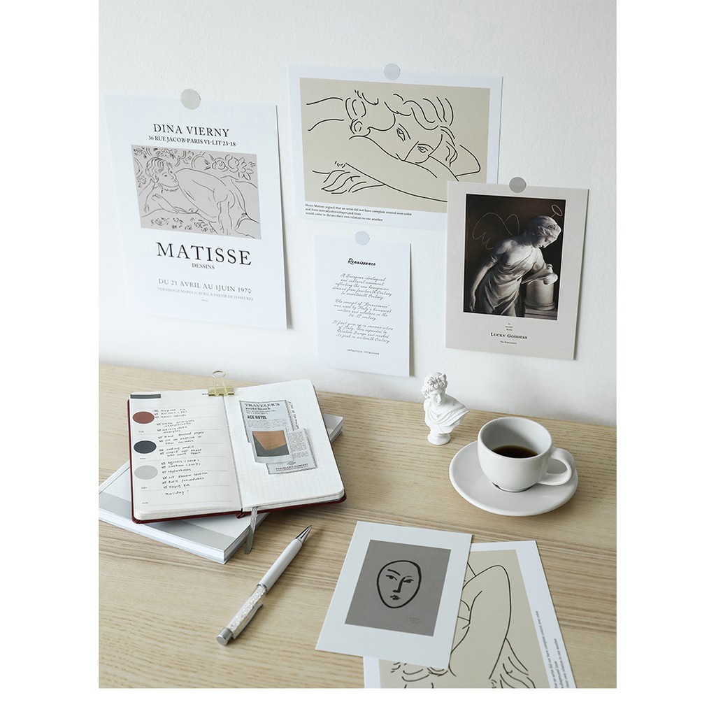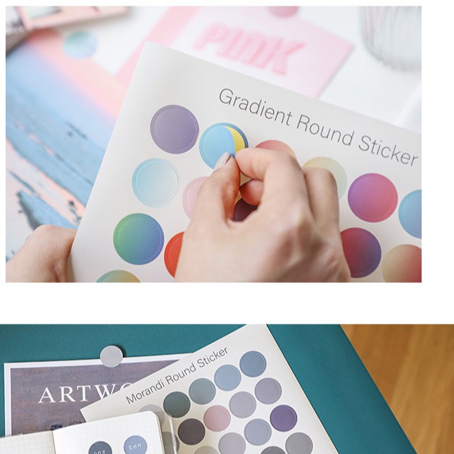 Bộ 48 miếng dán tròn round sticker cố định tranh dùng trang trí tông màu xinh xắn