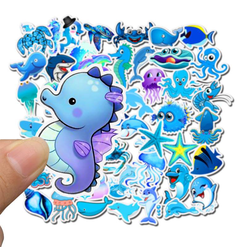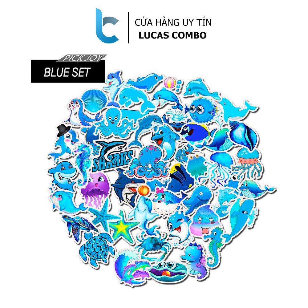 Bộ 49 Sticker Màu Xanh Dán Trang Trí Vali, Mũ Bảo Hiểm, Điện Thoại, Laptop, Macbook