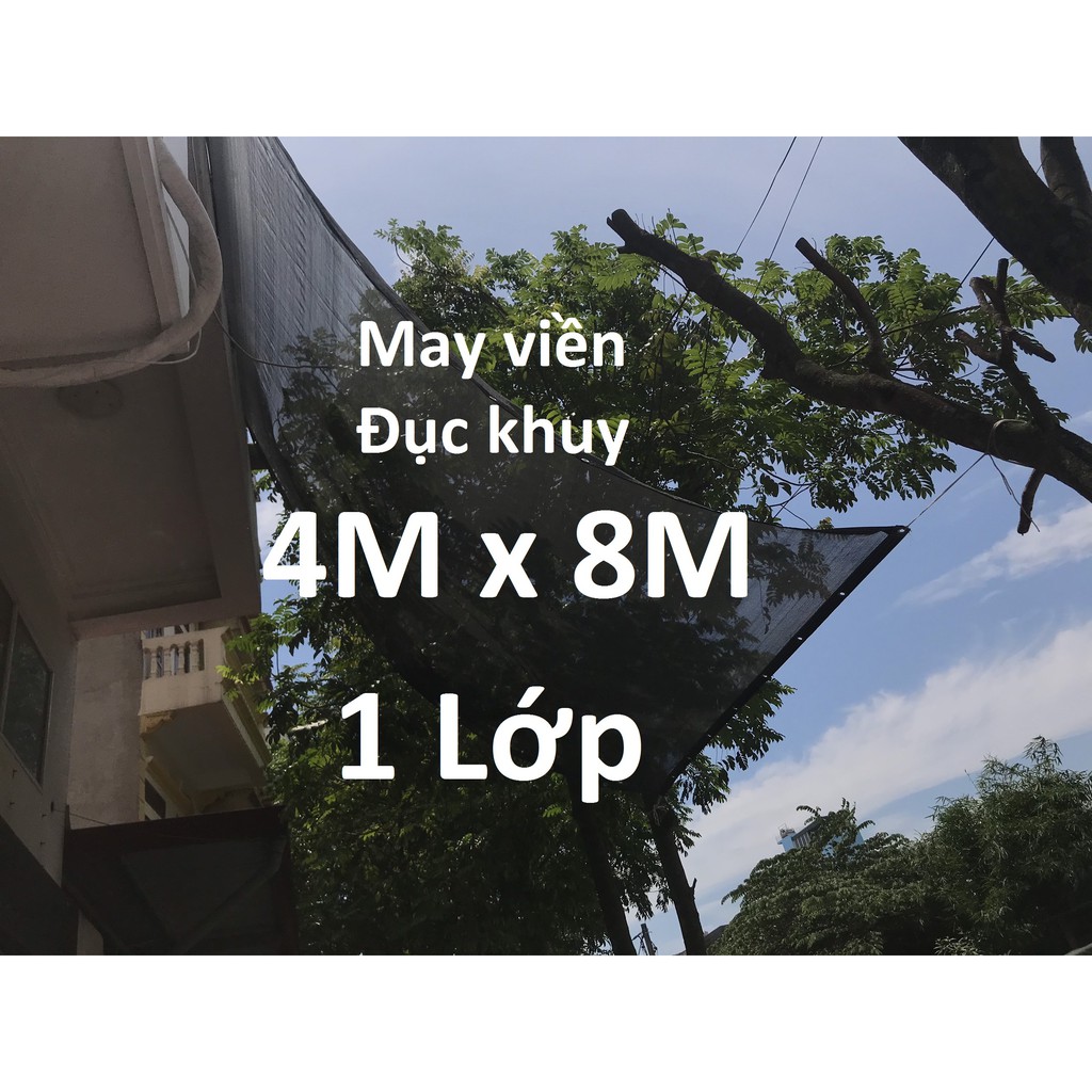 Kích thước: 4mx8m=32m2Lưới che nắng [Cản ~70%] - Dệt kim Hàn Quốc - Máy Viền - Đục khuy rất chắc chắn