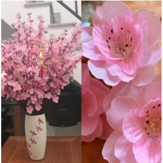 Giới thiệu 5/10 Cành hoa mai đào giả đón tết cao 90cm