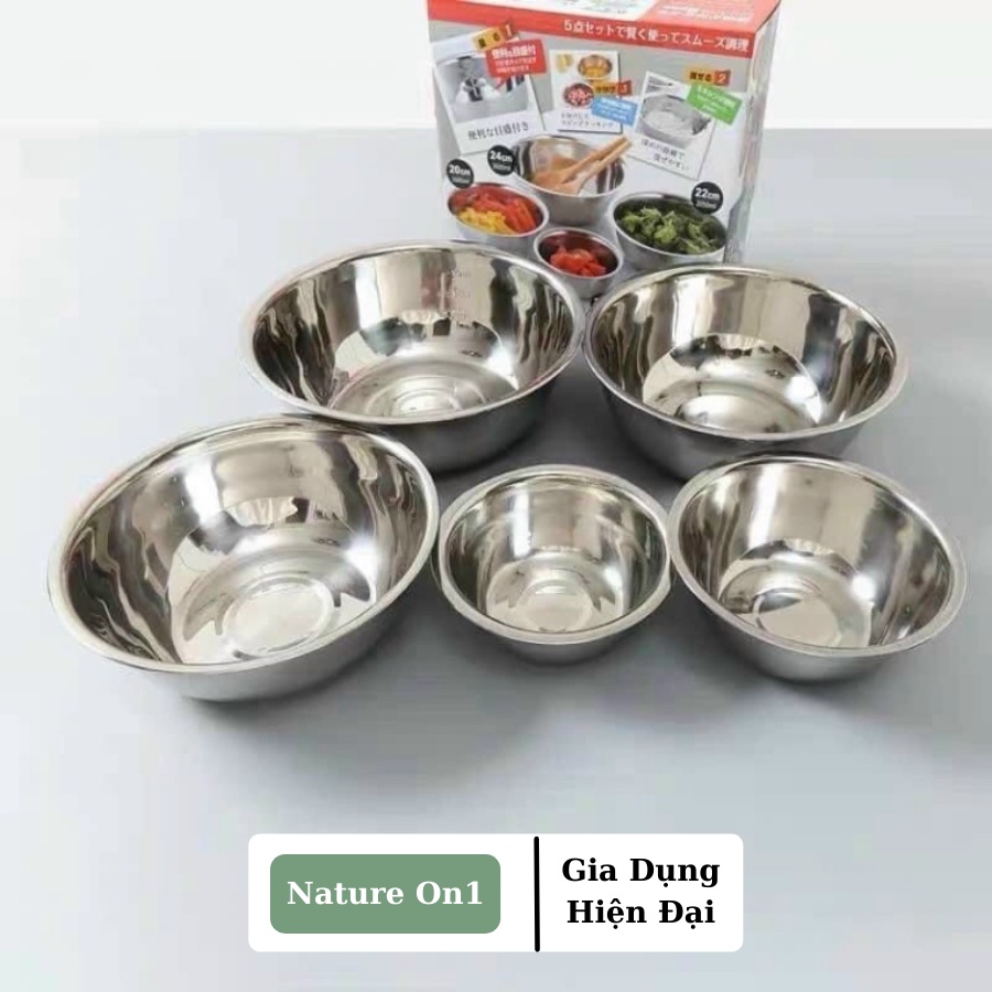 Bộ 5 Bát Âu Trộn Inox Xuất Nhật Hàng Đẹp Siêu Bền Chống Gỉ - Set 5 Bát Tô Inox Nhật