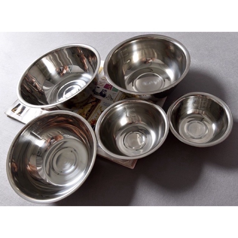 - 1 bộ gồm 5 âu trộn inox Xuất Nhật Bản, kích thước khách nhau