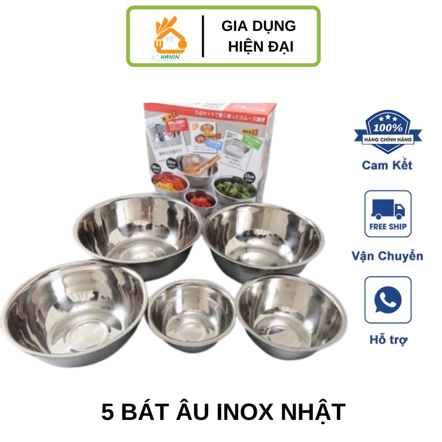 Bộ 5 Bát Âu Trộn Inox Xuất Nhật Hàng Đẹp Siêu Bền Chống Gỉ - Set 5 Bát Tô Inox Nhật