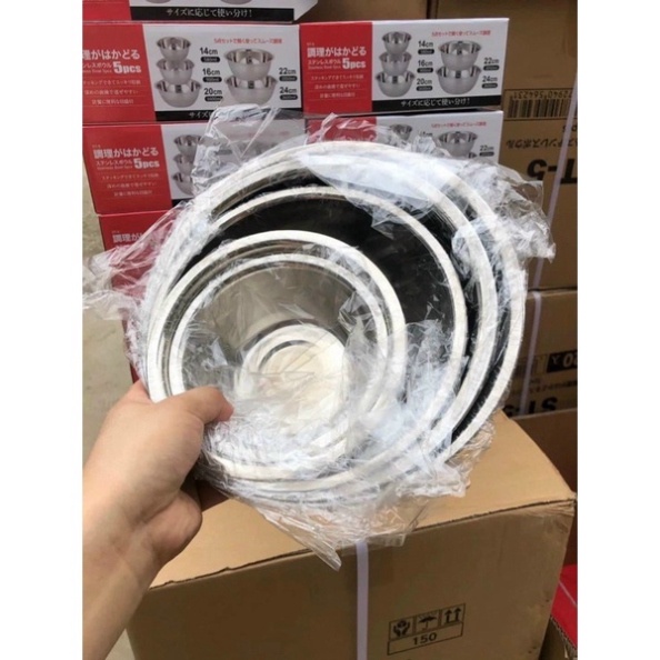 - 1 bộ gồm 5 âu trộn inox Xuất Nhật Bản, kích thước khách nhau