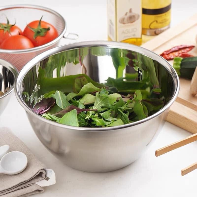 - Bát trộn bột chất liệu Inox là dụng cụ hỗ trợ để công việc nấu nướng của chị em được nhẹ nhàng và đảm bảo vấn đề an toàn thực phẩm. Với việc lòng sâu, độ rộng miệng vừa phải, bát trộn inox là 1 dụng cụ làm bánh không thể thiếu trong căn bếp của bạn. Bát trộn inox giúp cho việc đánh bột không bị văng ra ngoài. Độ nhẹ vừa phải so với bát thủy tinh bát sứ nên việc trộn rau salad với khối lượng lớn cũng thường được làm trong chiếc tô inox đa năng này. Việc đánh bột trong bát inox cũng tránh được trường hợp hỏng vỡ bát như việc sử dụng bát sứ thủy tinh.