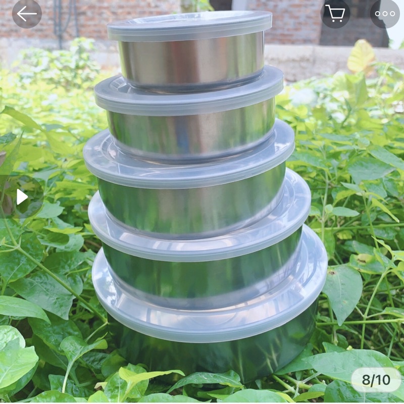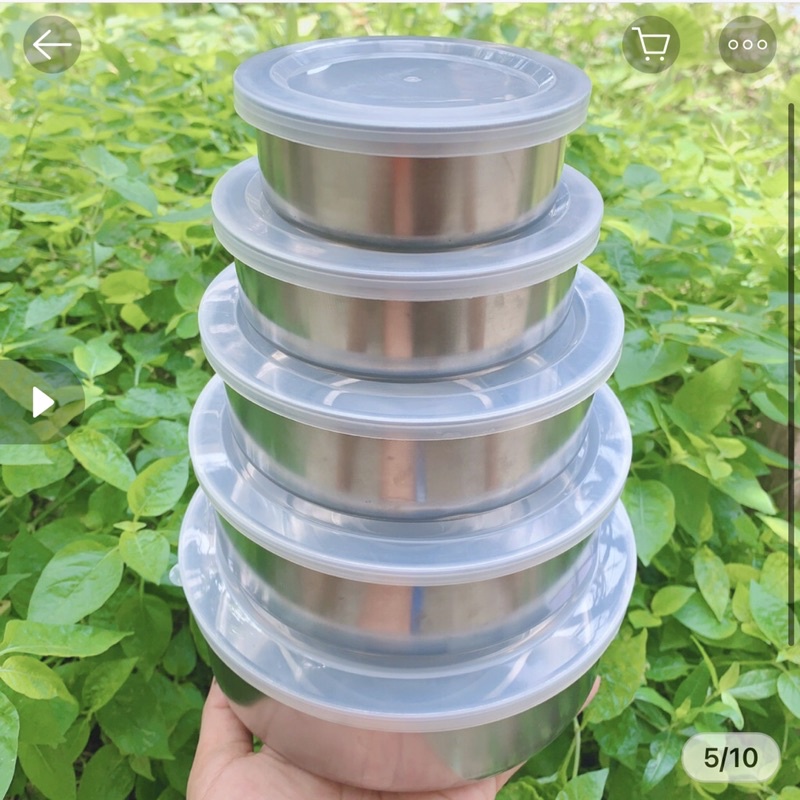 :point_right:Bộ 5 bát inox cao cấp có nắp đậy với thiết kế thông minh với bát được làm bằng chất liệu inox không rỉ đặc biệt an toàn đẹp sáng bóng.